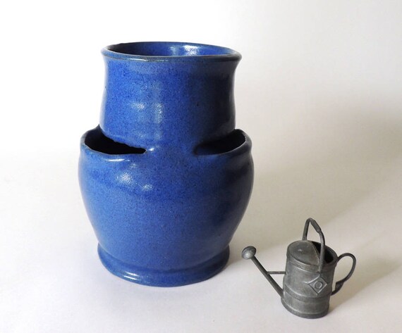 Vintage Hand Thrown Cobalt Blue Strawberry Jar Planter Or Vase Circa 1920